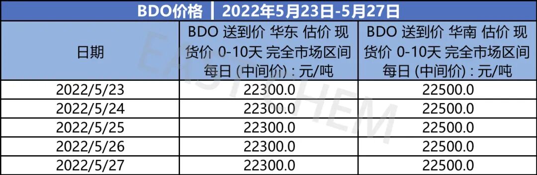 上周,国内BDO市场行情弱势僵持。市场缺乏明朗的消息指引,业者多持谨慎观望态度,实单商谈气氛清淡;目前多空因素交织,供需双方商谈博弈,市场重心涨跌困难。