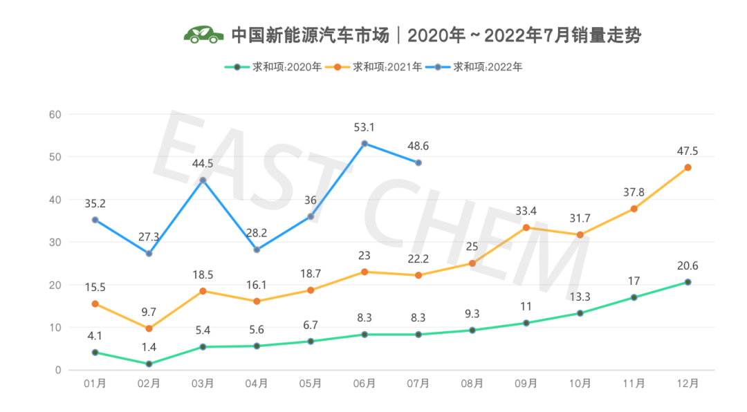 2022年1-7月 新能源乘用车国内零售224.8万辆,同比增长122.5%。