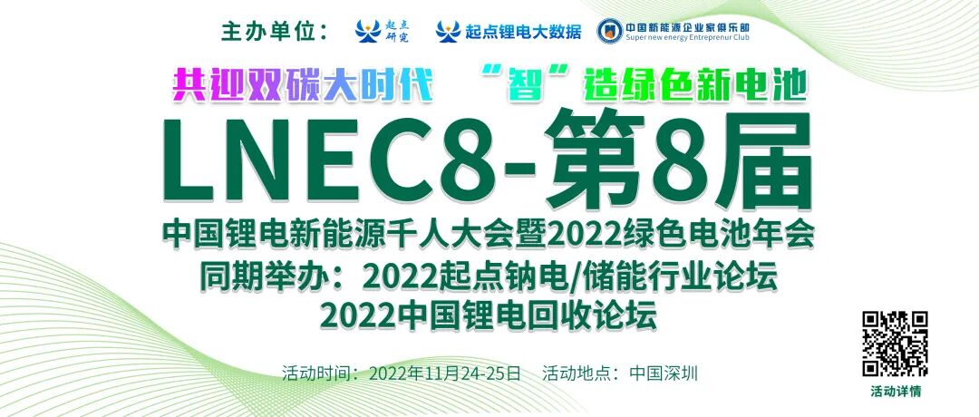 11月24日-25日,上午9点-下午18点,第8届中国锂电新能源千人大会暨2022绿色电池年会正式举办。行业大咖齐聚现场,60+热门议题共享。