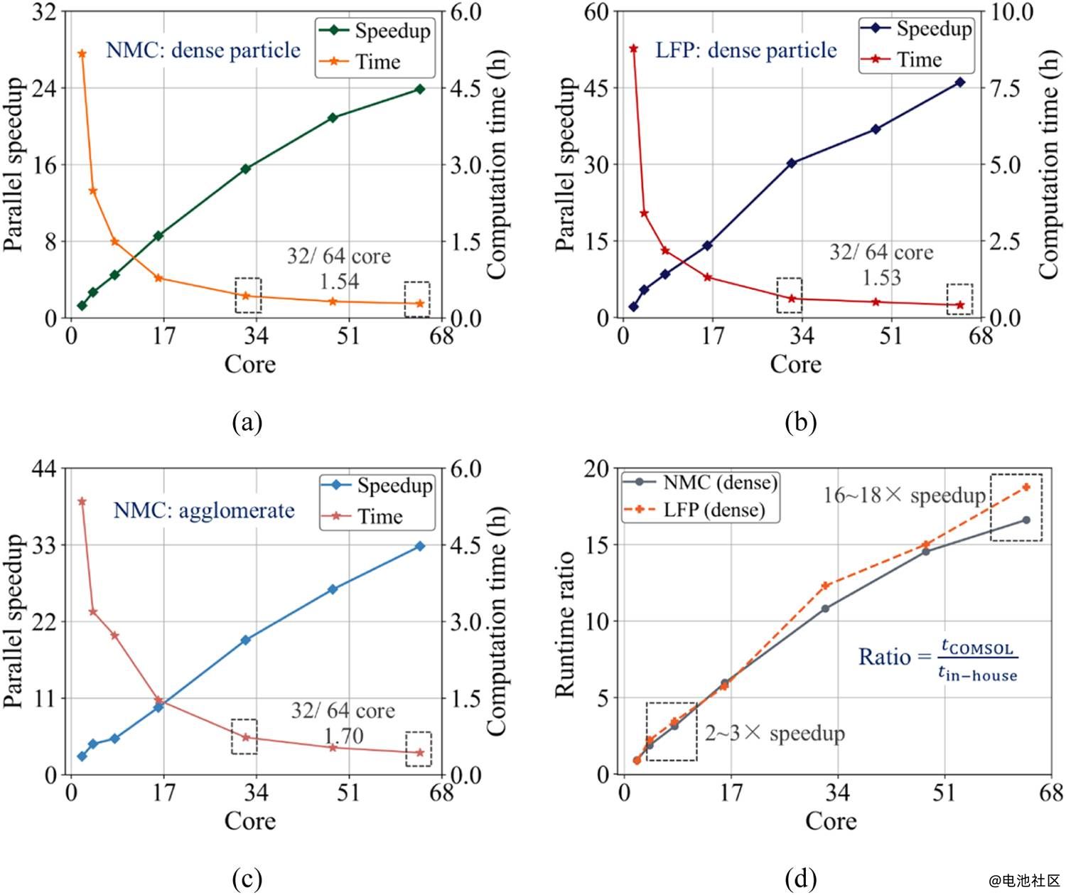 ✅ MPI并行加速:64核实现46倍加速,0.5小时完成1C循环仿真